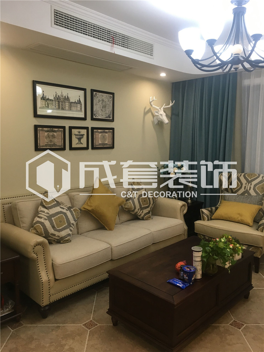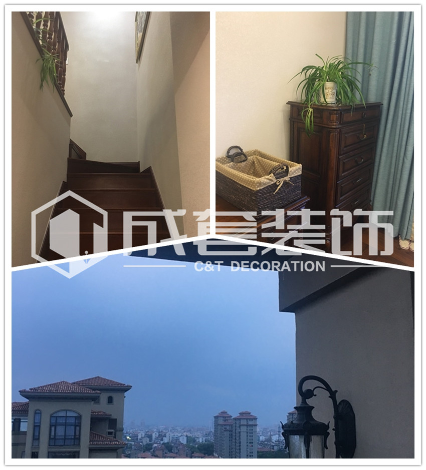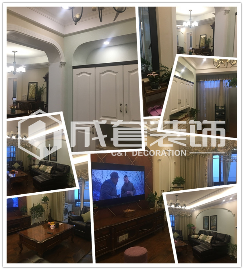 本案做为美式风格的其中一种,伴随着浓郁的复古情怀和主人生活的人文气息。居室色彩主调为深咖啡色,家具搭配经典的皮质沙发,实木家具等。家具、门、地板等都是大面积的咖色,室内各种花饰、摆件、丰富的木线变化、优雅明快的窗帘帷幄是西式传统室内装饰,空间环境表现出华美、富丽、浪漫、神秘的气氛。