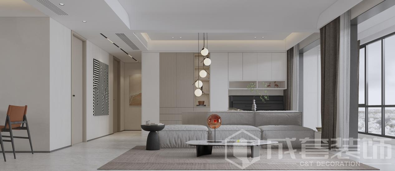 客厅抛弃繁杂的造型,整个空间以白色系为主,