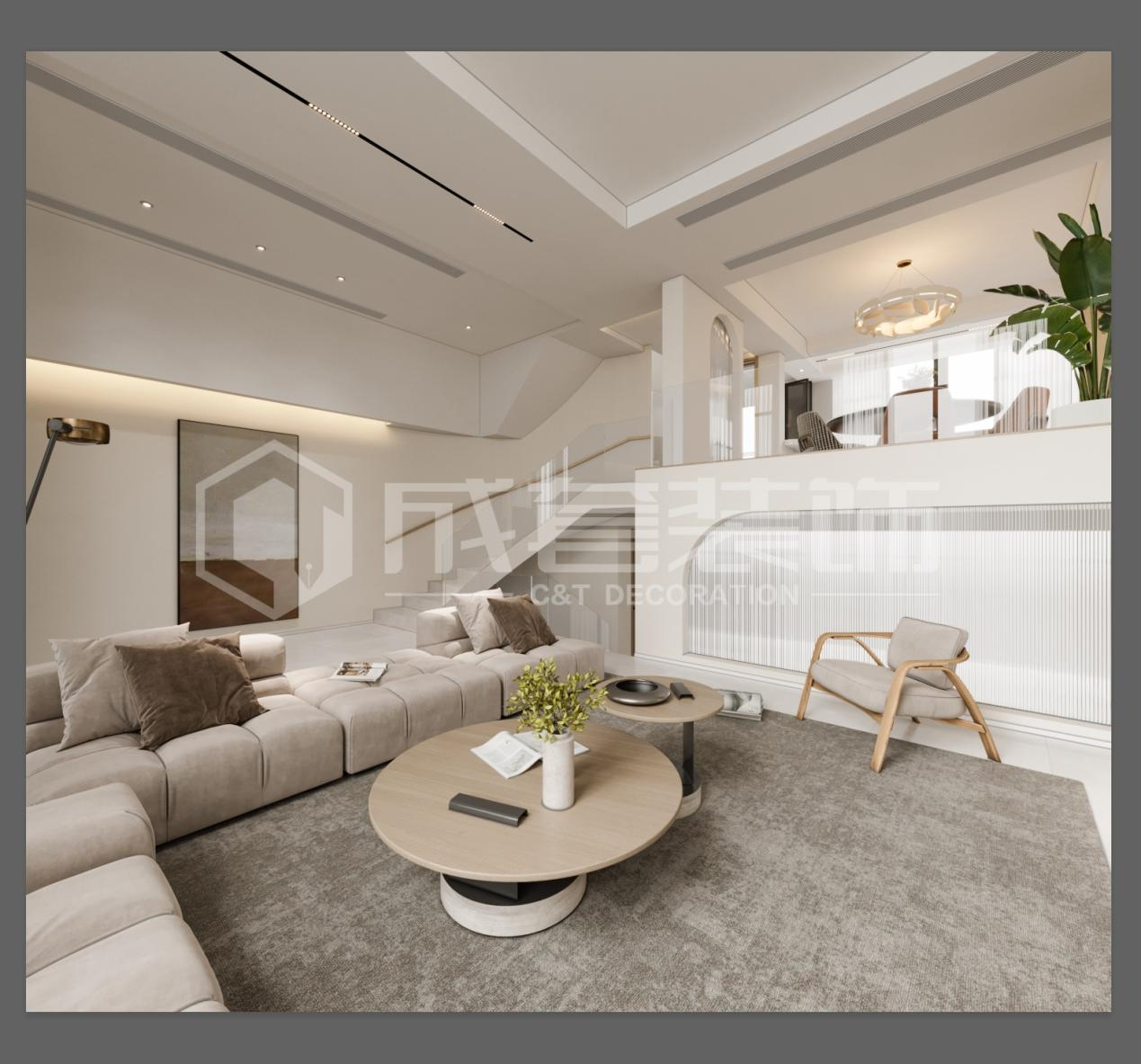 客厅采用无主灯的设计