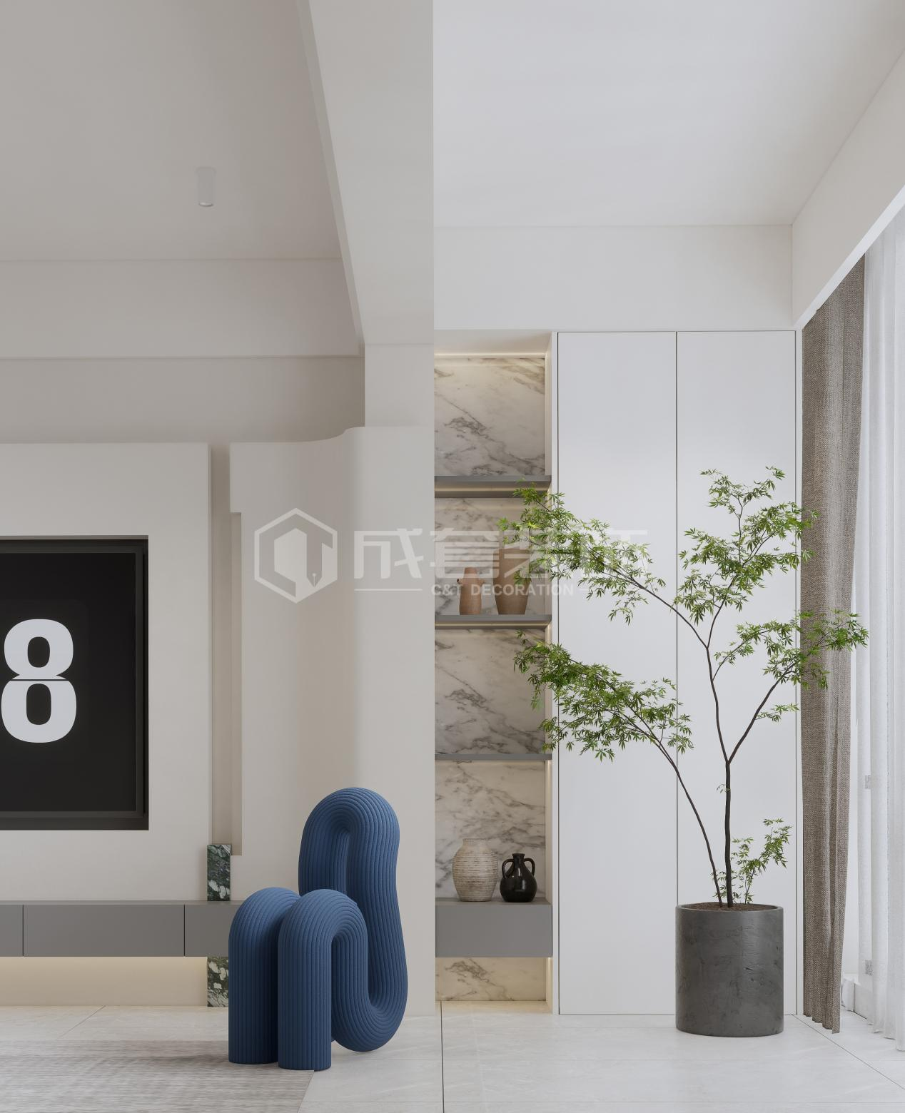 蓝色柜体搭配上艺术装置,与客厅的蓝色单椅形成呼应。
