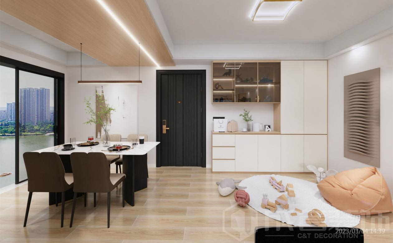 木色和白色的温柔搭配,将空间悠闲惬意的氛围溢出。